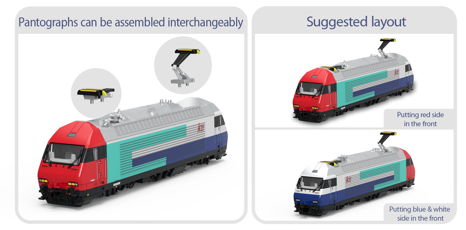 The mini diecast train is based on the Swiss-made locomotive of the Kowloon-Canton Railway Through Train (Ktt). Locomotive moved the coaches on either side of the train. Each end is coloured in red and white plus blue respectively.