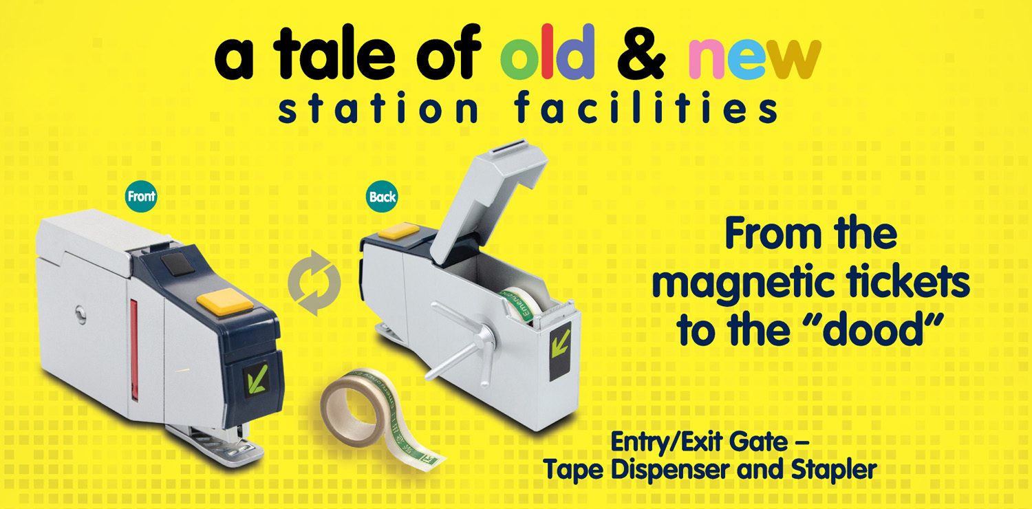 The "Entry/Exit Gate" stationery set is flawlessly integrated with a stapler and a tape dispenser, and comes with a strip of staples and a roll of MTR signs washi tape.