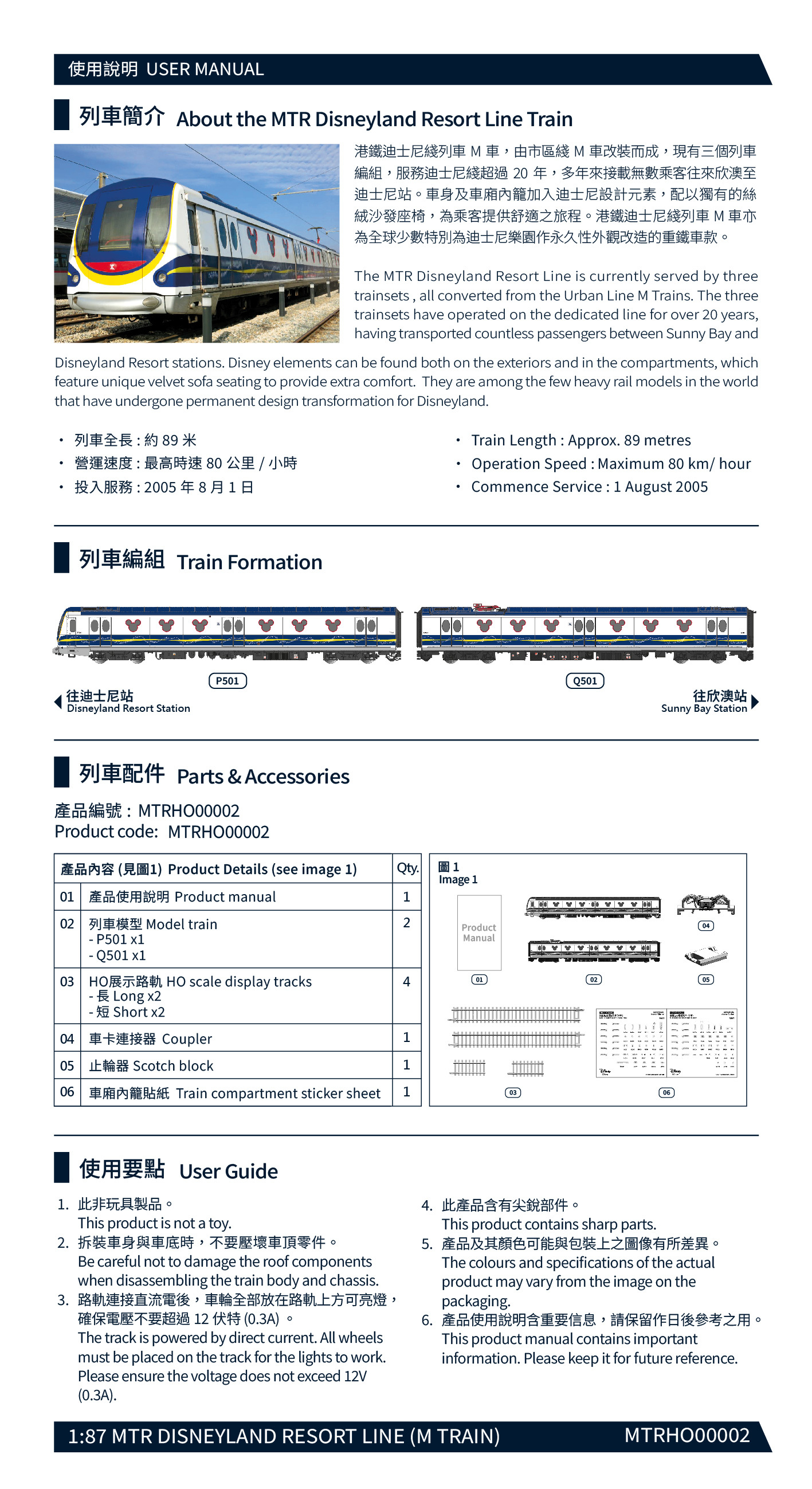 1:87迪士尼綫列車模型 – 2卡 (展示版)產品使用說明