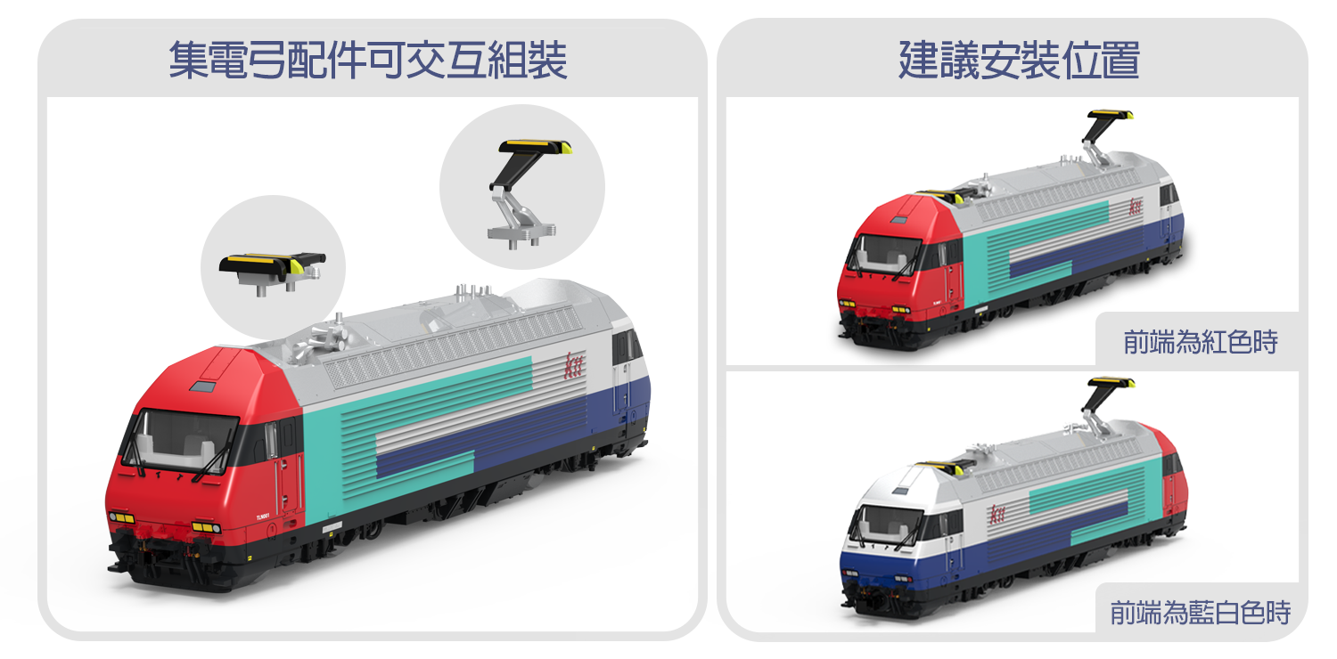 迷你合金列車參考九廣鐵路直通列車(Ktt)兩端的瑞士製機車。機車用來牽引載客車卡,可以使用紅或白藍端行駛,換句話說列車有兩個車頭顏色。