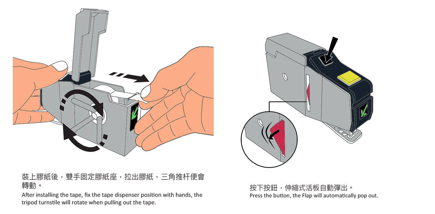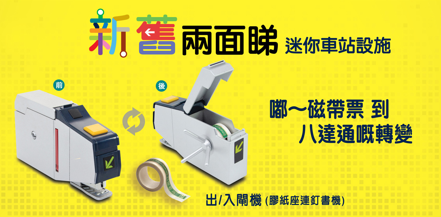 一體兩面的「閘機」將釘書機同膠紙座功能融合,此外,隨「機」附送釘書釘及一卷印有車箱標誌組成的膠紙。
